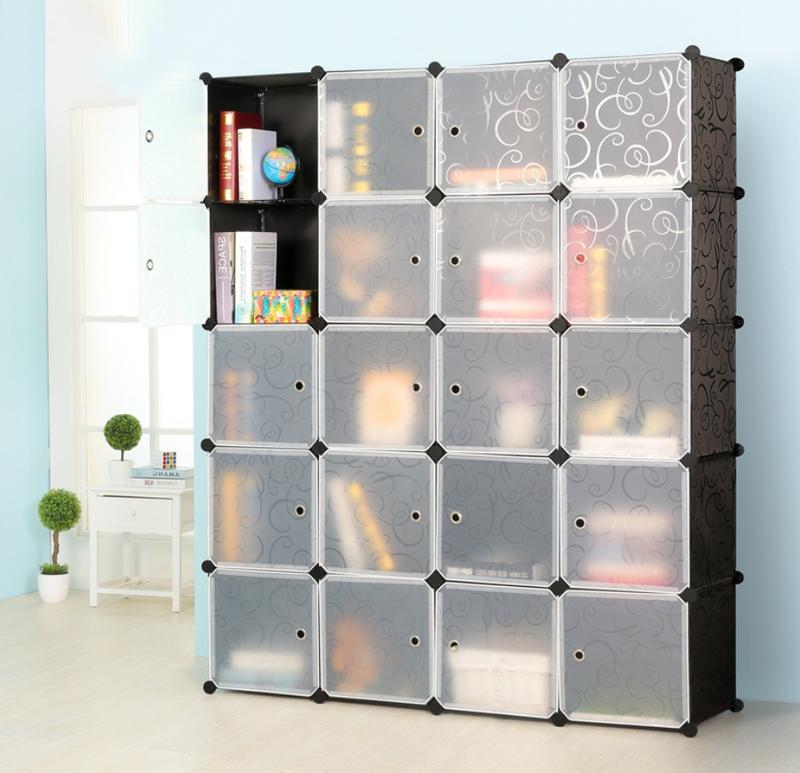 自由組合書櫥置物架儲物櫃組裝格子收納櫃子簡易書架塑膠塑料組合卡通兒童衣櫃diy魔片簡易組合衣櫃收納組合櫃樹脂衣櫃