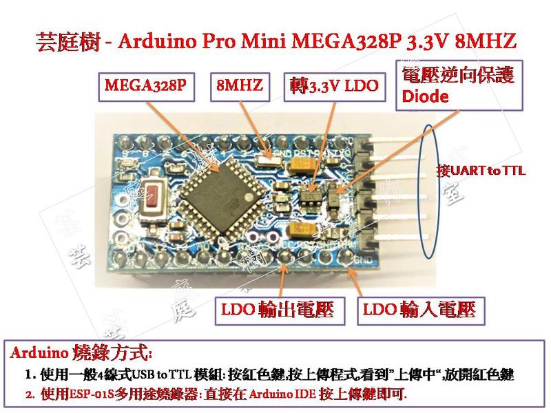 [芸庭樹] Arduino Pro Mini 3.3V/8MHZ 5V/16M ATMEGA 328P 168P