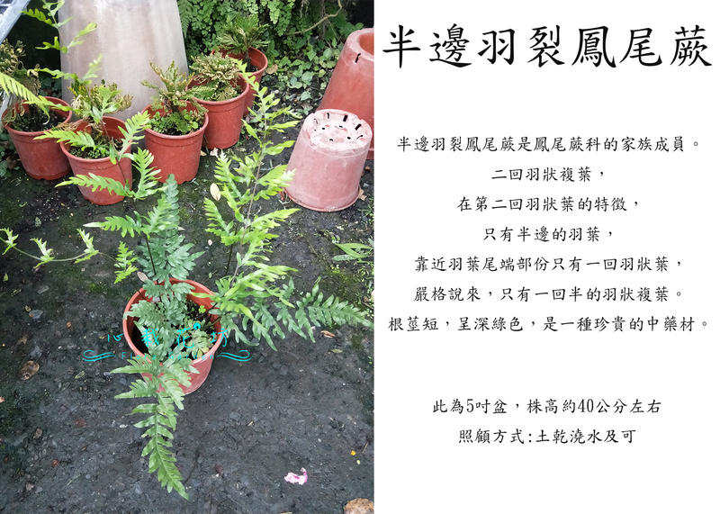 心栽花坊-半邊羽裂鳳尾蕨/半邊旗/5吋盆/蕨類/綠化植物/室內植物/觀葉植物/售價200特價150