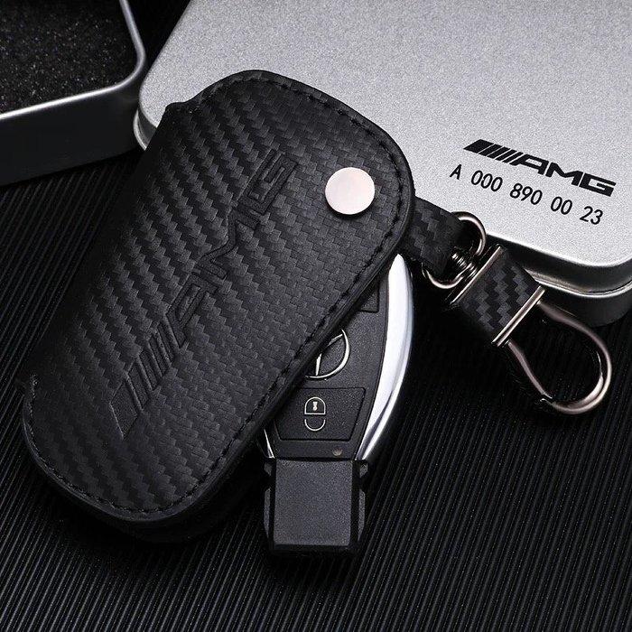 賓士Benz AMG高質感真皮鑰匙包 碳纖維 磨砂麂皮汽車遙控鑰匙包 奔馳ABCES級 GLC GLE全車系真皮鑰匙皮套
