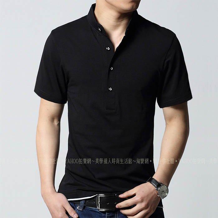 男T恤 純棉上衣 黑色 潮T 短袖 立領 運動服 休閒服 夏裝 型男 紳士M~5XL大碼 潮T ~6629