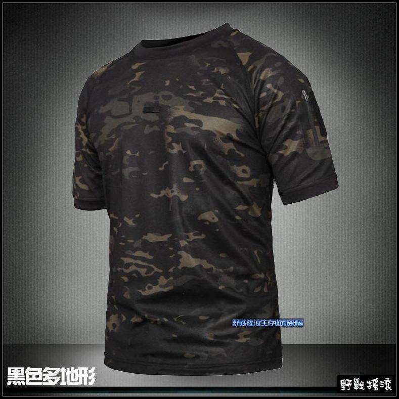 【野戰搖滾-生存遊戲】軍風短袖戰術T恤、速乾上衣【Multicam Black】暗夜迷彩短袖T恤黑色多地形迷彩服排汗T恤