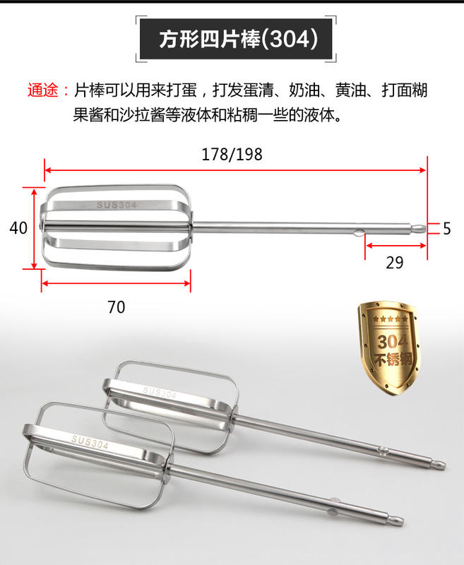 家用 電動打蛋器用方形片棒一支(304不鏽鋼 / 夾頭部分是尖頭形狀 / 單支價格 )