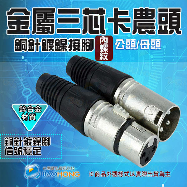 含稅價附發票】鋅合金材質 銅針鍍鎳 金屬三芯3芯插頭 佳能公母頭 XLR卡農插頭 金屬麥克風音頻轉接頭 音響話筒卡儂頭