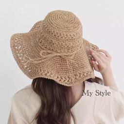 純手工編織鉤針草帽女夏天鏤空大沿帽海邊沙灘帽度假草帽遮陽帽漁夫帽