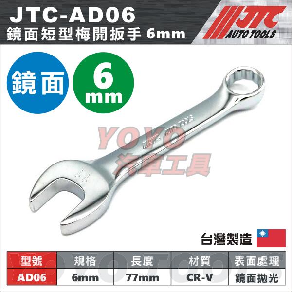 【YOYO汽車工具】JTC-AD06 鏡面短型梅開扳手 6mm 6號 鏡面 短型 短 梅開 板手 扳手 梅開扳手 短梅開
