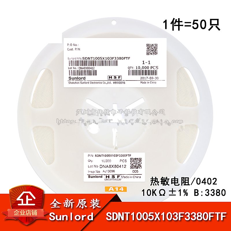 0402貼片熱敏電阻 10KΩ ±1% B:3380 SDNT1005X103F3380FTF 50只 W2-6 [298307]