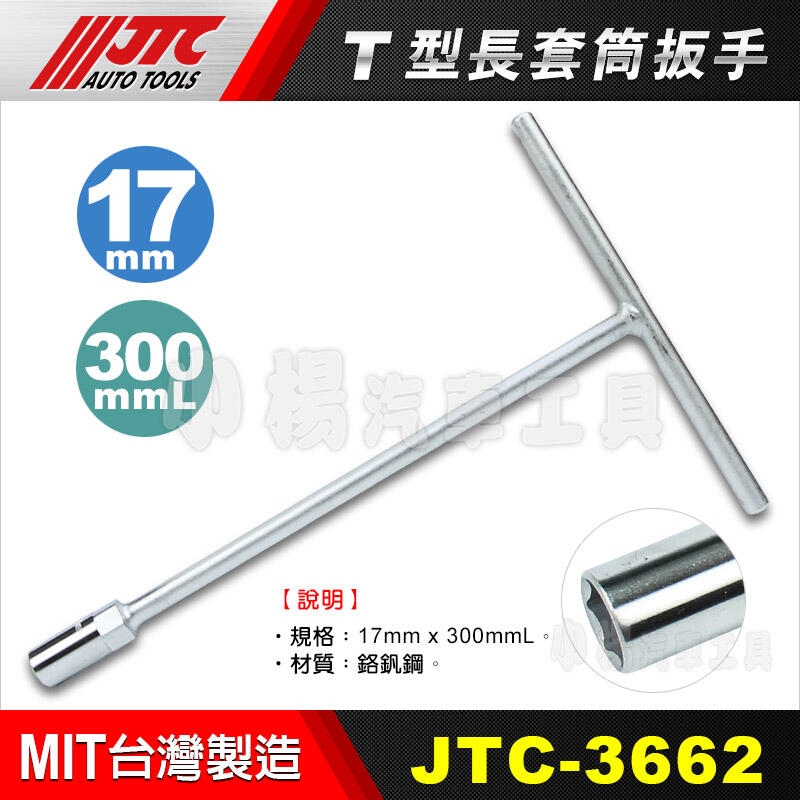 【小楊汽車工具】(現貨) JTC 3662 T型長套筒扳手 17mm 300L 17號 T桿 T型 套筒 板手 套筒板手