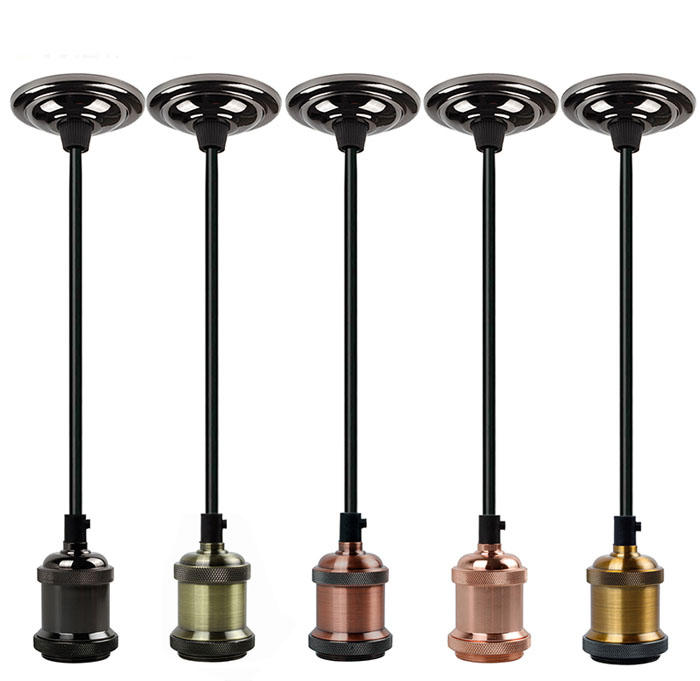 5Cgo【快樂窩】1米懸吊式燈頭插座e27大螺口燈底座配件圓盤美式鄉村風復古吊燈座 569637620217