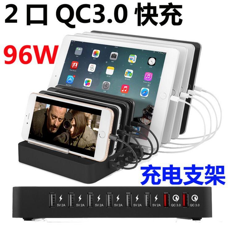智能QC3.0多口手機平板充電器 美規 2口快充 充電支架 8口USB手機支架QC3.0快充充電座9777