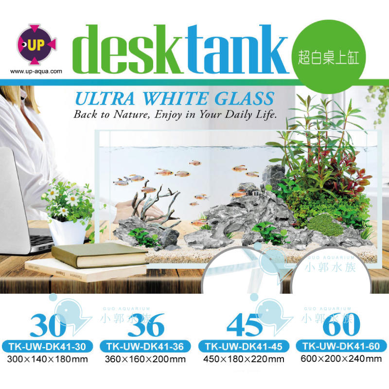 小郭水族-雅柏UP【超白玻璃 屏風缸 45*18*22cm】1.5尺 魚缸 超白缸 風水缸 客廳 兩棲爬蟲