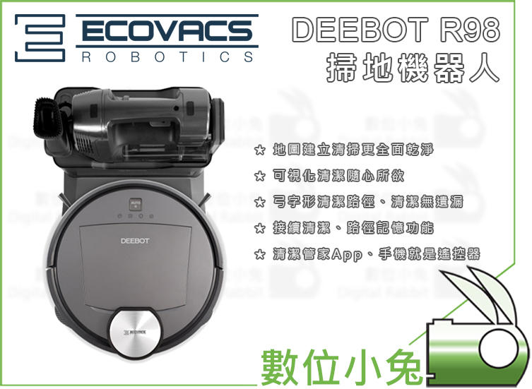 數位小兔【ECOVACS DEEBOT R98 掃地機器人】APP遙控 可手持 集塵 智能清潔 擦地 遠端控制 掃地機