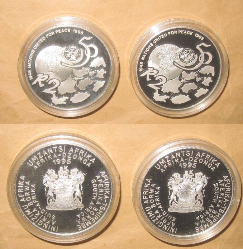 1995 南非 South Africa $R2 聯合國成立五十周年 U.N. 50th Proof 鏡面精鑄紀念大銀幣