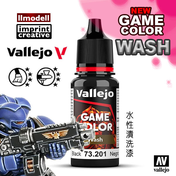 ㊣ AV Vallejo 漬洗液墨線 黑色 73201 Black Wash 鋼彈戰棋濾鏡舊化模型漆水性漆壓克力顏料