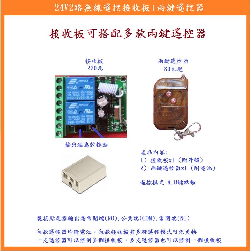 【鎖匠之家】24V2路無線遙控接收板+兩鍵遙控器 24V繼電器 乾接點輸出 NO COM NC 無線遙控開關