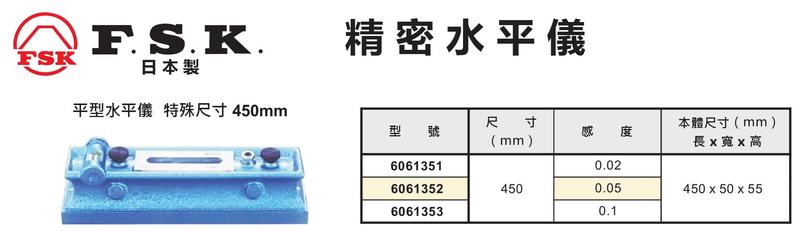 FSK 精密水平儀 平形水平儀 特殊尺寸 450mm 價格請來電或留言洽詢