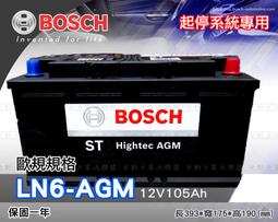 全動力-BOSCH 博世 歐規電池 起停系統 AGM LN6 (12V105Ah) 汽車電池 怠速熄火裝置專用