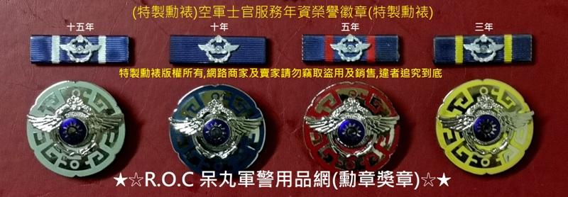 ★☆R.O.C 呆丸軍警用品網(徽章配件)☆★空軍士官服役年資章.榮譽章一套(勳裱特製)可收藏【㊣品】