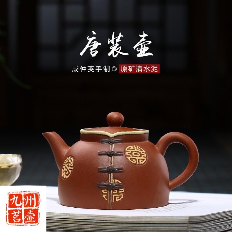 紫砂壺純手工唐裝壺名家咸仲英陸巧英手工茶具家用功夫泡茶壺1入