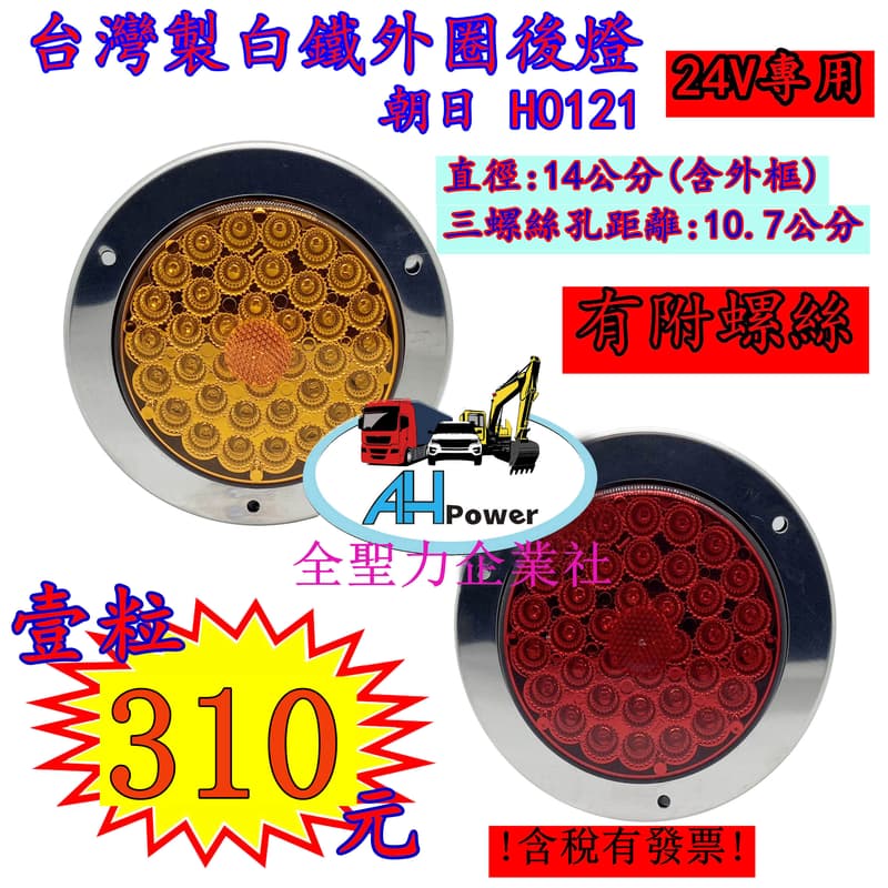 台灣製造 朝日 白鐵外圈 LED 24V 尾燈 方向燈 後燈 邊燈 剎車燈 貨車 卡車 聯結車 貨櫃車 紅色 黃色 圓形