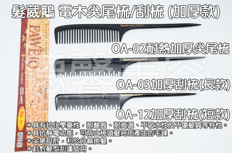 *德馨美容*台灣製 髮葳鵝 FAWEIO 加厚款 電木梳 電木刮梳 刮梳 梳子 尖尾梳 剪髮梳 理髮梳 耐熱梳 扁梳
