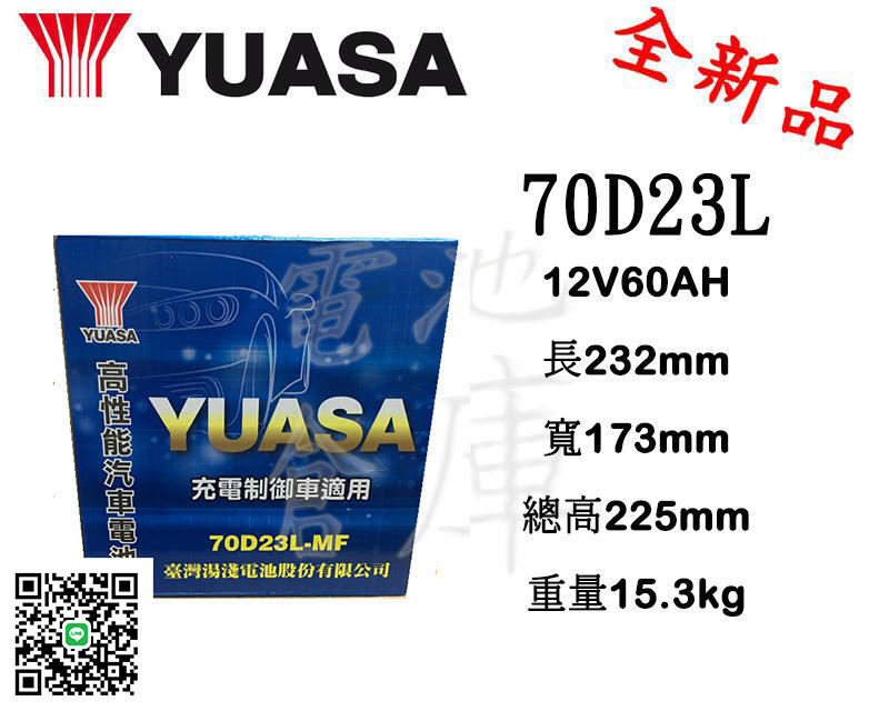 *電池倉庫*全新湯淺YUASA加水汽車電池 電池 70D23L(55D23L加強)