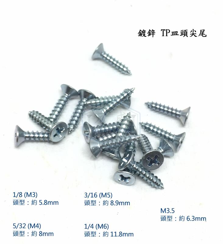 鍍鋅 皿頭鐵板牙 1/8(M3)*長度 5/16 ~ 1-1/2 平頭尖尾TP自攻螺絲