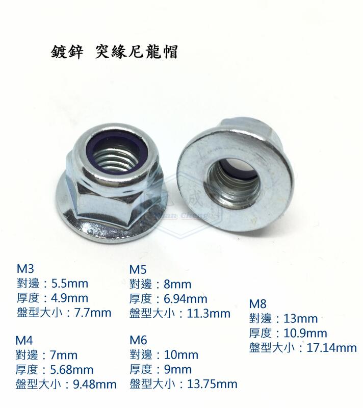 鍍鋅 突緣尼龍螺帽 M3 M4 M5 M6 M8 六角法蘭防鬆螺母