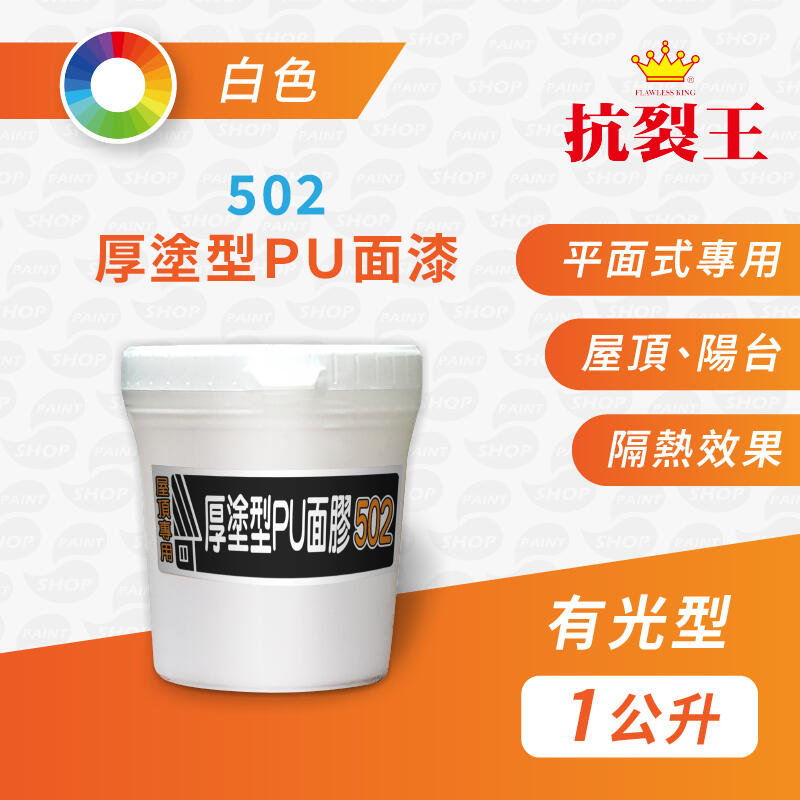 《抗裂王》502 厚塗型PU面漆-白色【1公升】平面用|屋頂漆|室外漆|隔熱漆|漆壹漆