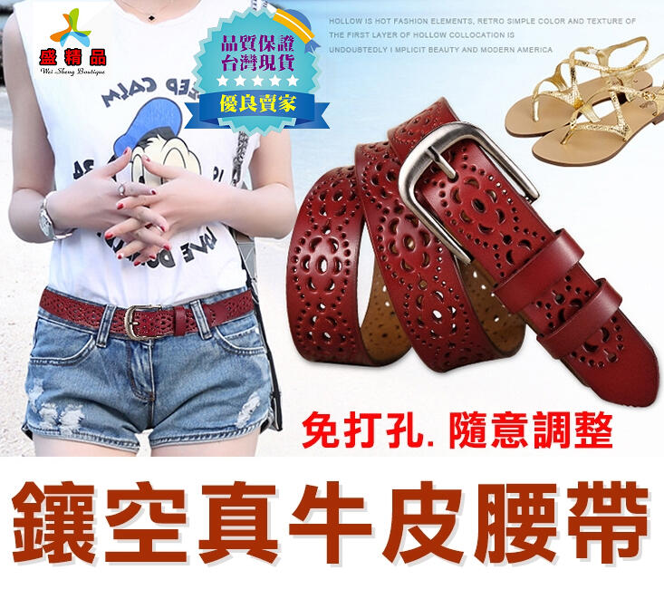 歐式鏤空真牛皮腰帶☆[台灣公司貨.五色可選] 盒裝.透氣.耐用.無需打孔☆針扣式真皮皮帶【盛精品076】