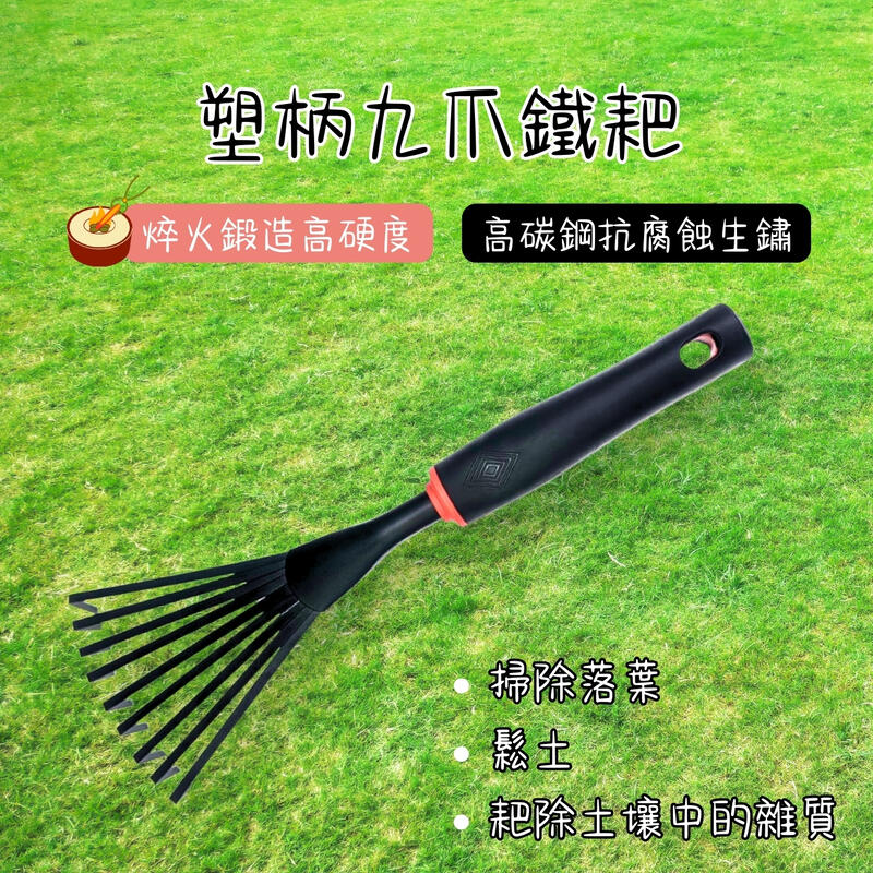 現貨【全館590免運】塑柄九爪鐵耙 落葉掃 除草耙 鬆土 掃除落葉 草坪清除落葉 耙除土壤中的雜質