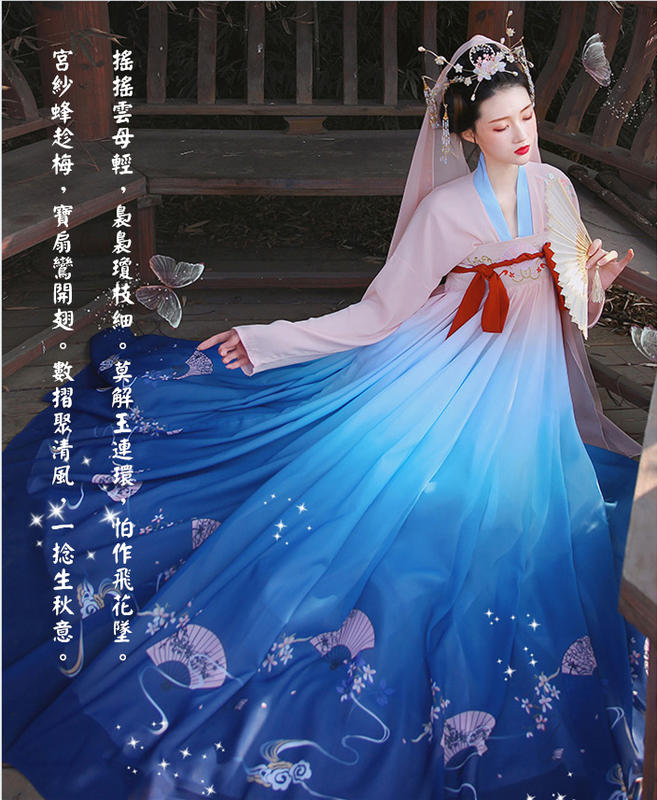 【§ 衫衫飾飾 §】10054【五明扇S-XL號】中國風齊胸襦裙漢服超仙日常古裝套裝漸變色舞服