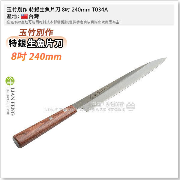 【工具屋】*含稅* 玉竹別作 特銀生魚片刀 8吋 240mm T034A 日本三層鋼 生魚片刀 柳刃 刺身刀 廚房刀