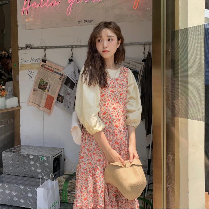 【六娘子】日系碎花氣質連身裙 背心裙  m54 可當孕婦裝 搭涼鞋斜背包草帽墨鏡碎花裙