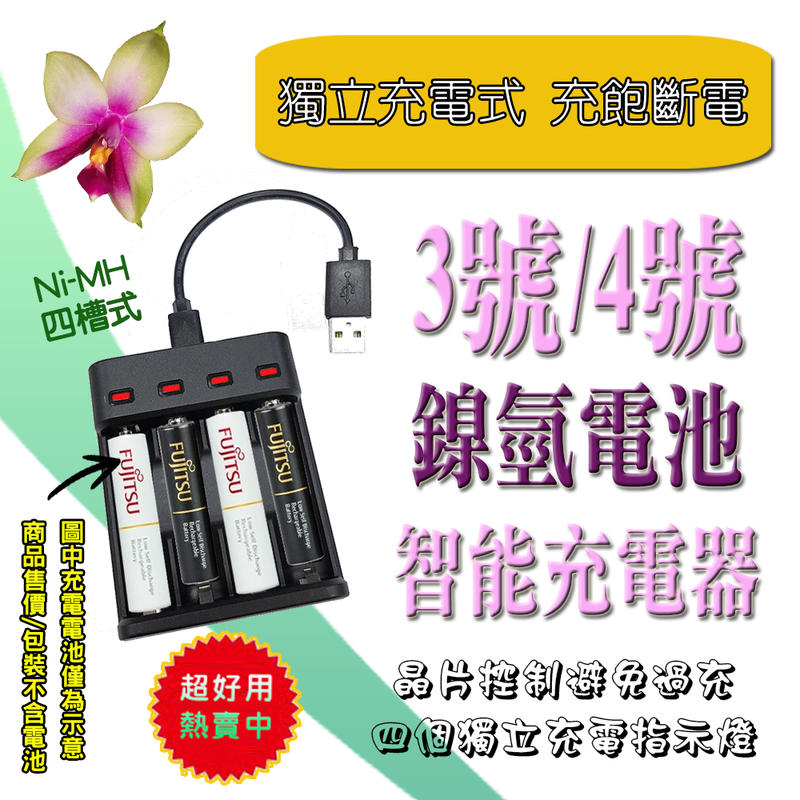 UCR05 三號四號 鎳氫電池 USB 智能充電器 獨立快充 1-4顆同時充電 智慧晶片 充飽斷電 電池反置保護