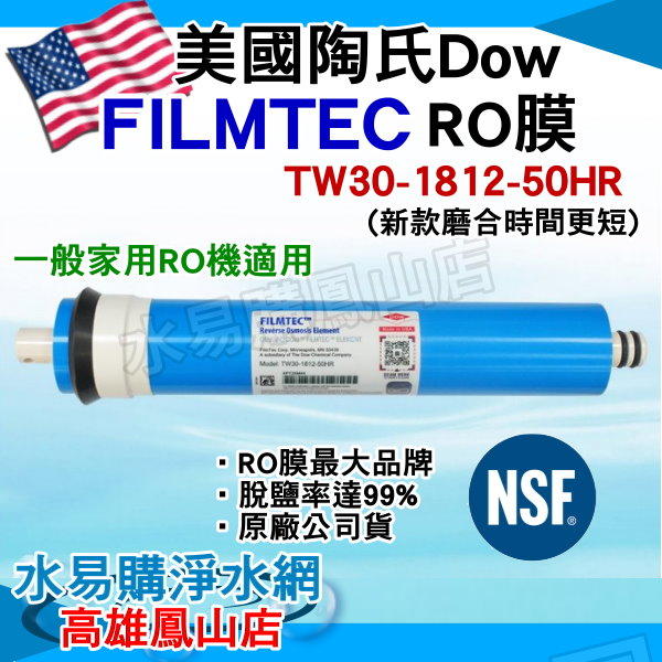 【水易購鳳山店】美國原裝進口陶式DOW杜邦FILMTEC 50G-RO膜 (TW30-1812-50HR)