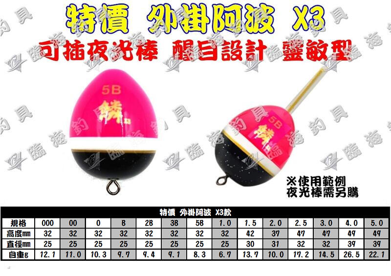 臨海釣具 24H營業/特價阿波 鱗X3款 鱗阿波 鱗浮標 外掛阿波 浮標 全層浮標 可搭水中 潮受 夜光棒/產品參考照片