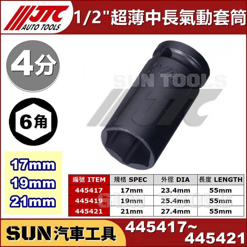 SUN汽車工具 JTC 445417 445419 1/2" 超薄 中長 氣動 套筒 17 19 21 mm 4分 四分