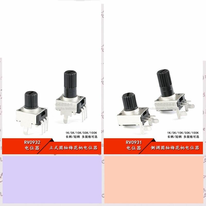 RV09型電位器 1K-5K-10K-50K-100K 立式 側調圓軸梅花柄 0932 0931 電位器