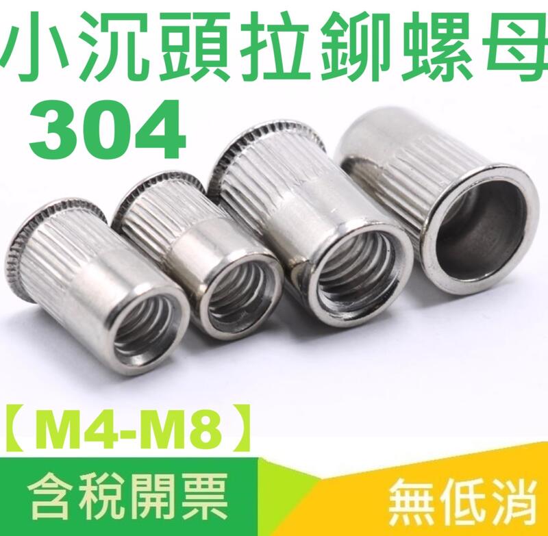 【M4-M8】不銹鋼304小沉頭拉鉚螺母 彩鋅 藍白鋅小沉頭柱紋拉帽