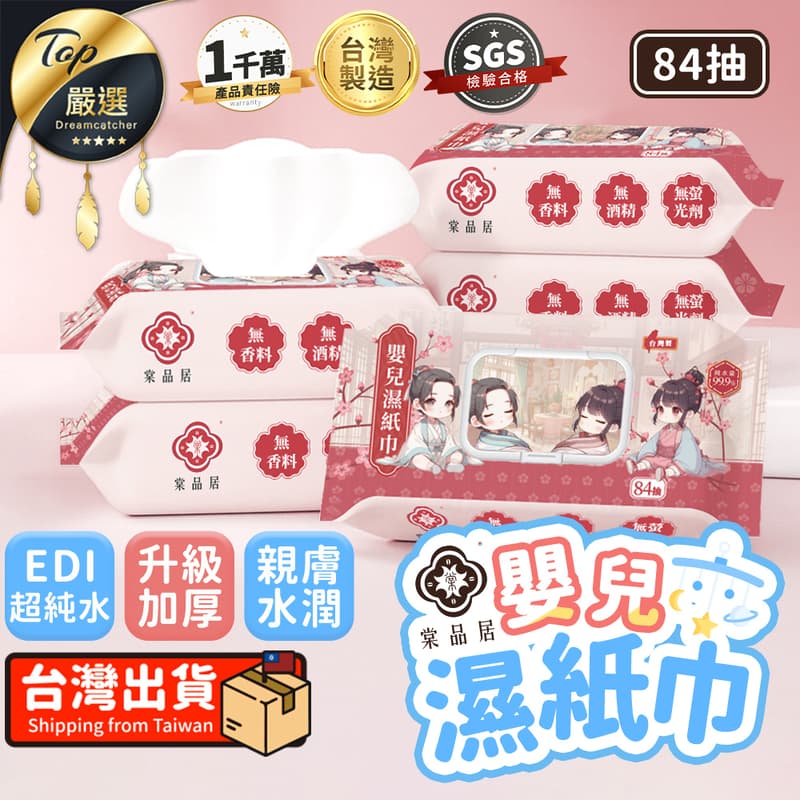 【EDI超純水】棠品居 嬰兒濕紙巾 84抽 無酒精 純水濕巾 寶寶柔濕巾 擦臉巾 新生兒可用|TNHF22