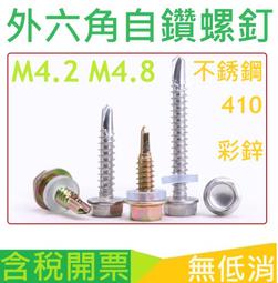 【M4.2 M4.8】不銹鋼410外六角自鑽螺釘自攻螺絲鑽尾螺絲 彩鋅