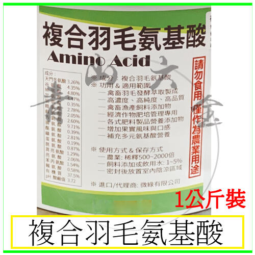 『青山六金』附發票 複合羽毛氨基酸 1KG 粉劑 複合氨基酸 富含16種胺基酸 成分純度高 營養生長 生殖生長