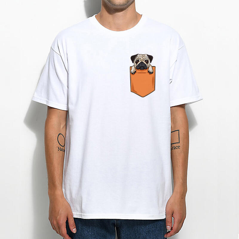 Pocket pug 短袖T恤 2色 歐美潮牌 創意設計假口袋狗狗男女班服團服潮T