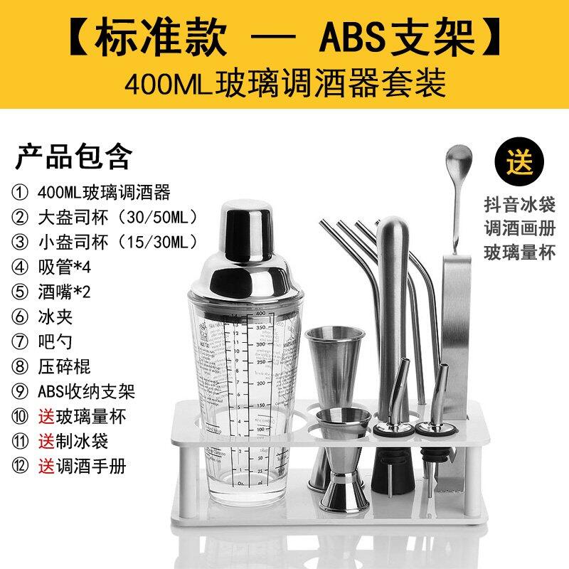 AGG024 (專業質感玻璃雪克杯400ml)PC刻度雪克杯PC搖酒杯 玻璃雪克壺套裝刻度搖酒器三段式調酒器雞尾酒