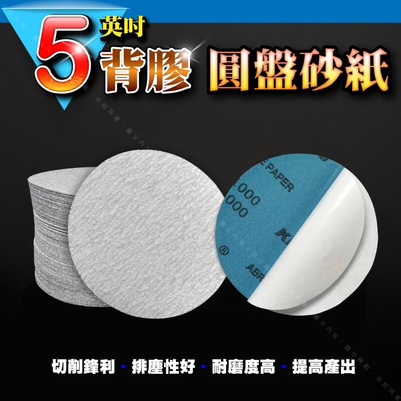 【5吋123mm背膠 圓盤砂紙】100張整盒 背膠自黏圓盤白砂紙 傢俱木工砂紙 白身木料砂磨 底漆面漆研磨整平拋光