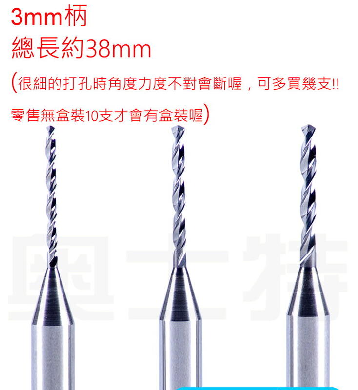 模型工具PCB鑽頭/微型鎢鋼鑽頭/打孔鑽頭(鑽尾)~3mm柄0.3mm~2mm(1支價格)運費看描述