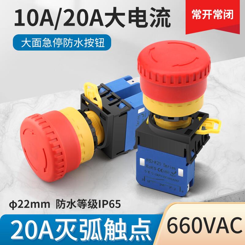 22MM蘑菇頭急停按鈕開關電源啟動緊急停止自鎖LA38-11TS旋轉式10A