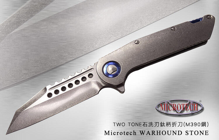 <刀之林>Microtech WARHOUND 藍色螺絲石洗鈦柄折刀(M390鋼石洗) 【不二價】
