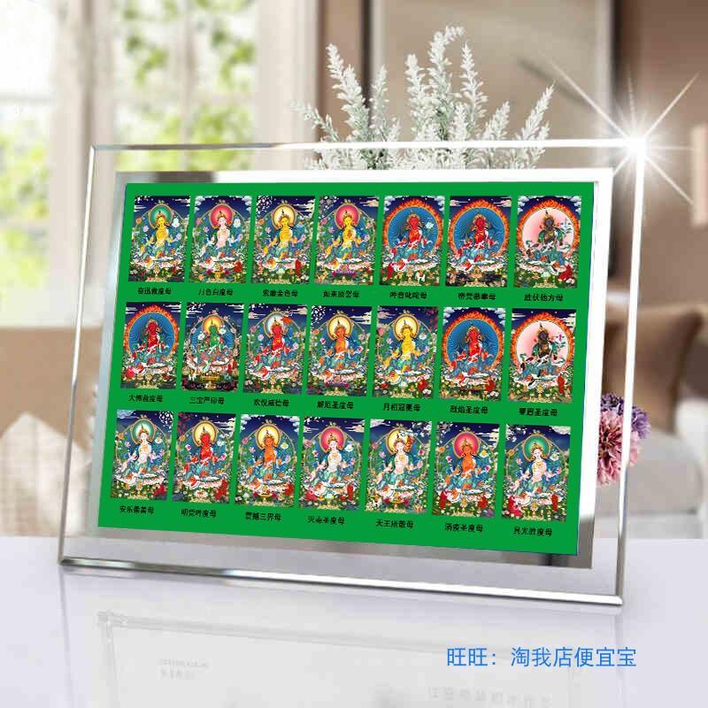 佛畫佛像唐卡 21度母佛像一整套 相紙塑封 相框擺臺二十一度母畫像佛像畫